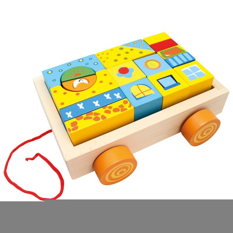 Dřevěný vozík s kostkami je skvělým dárkem pro všechny malé stavitele. Děti si kostičky naloží na vozík a převezou si je všude, kam bude potřeba.