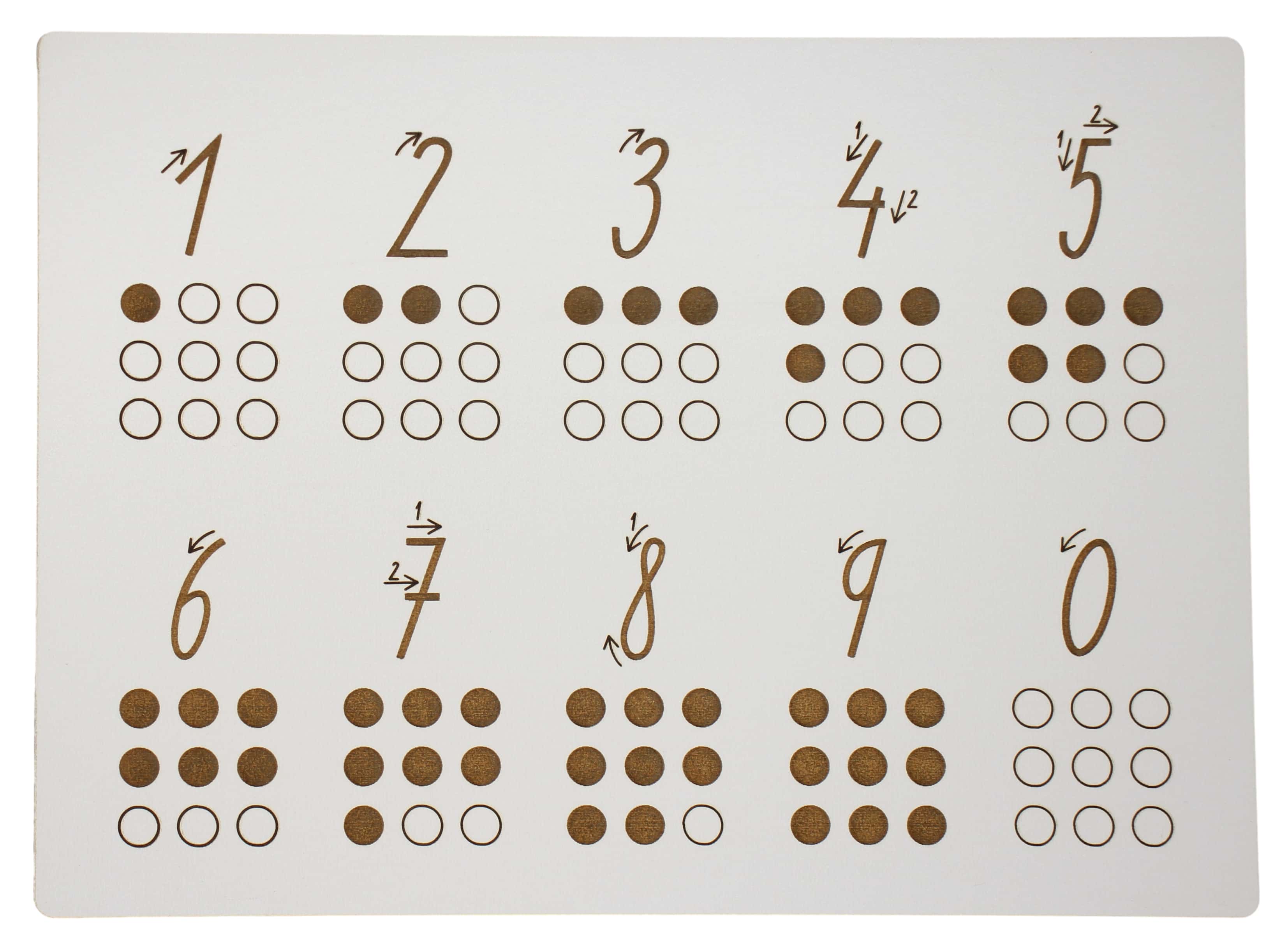 Vyhloubená čísla tvoří drážku, která vede ruku dítěte a pomáhá mu získat jistotu při psaní jednotlivých čísel.