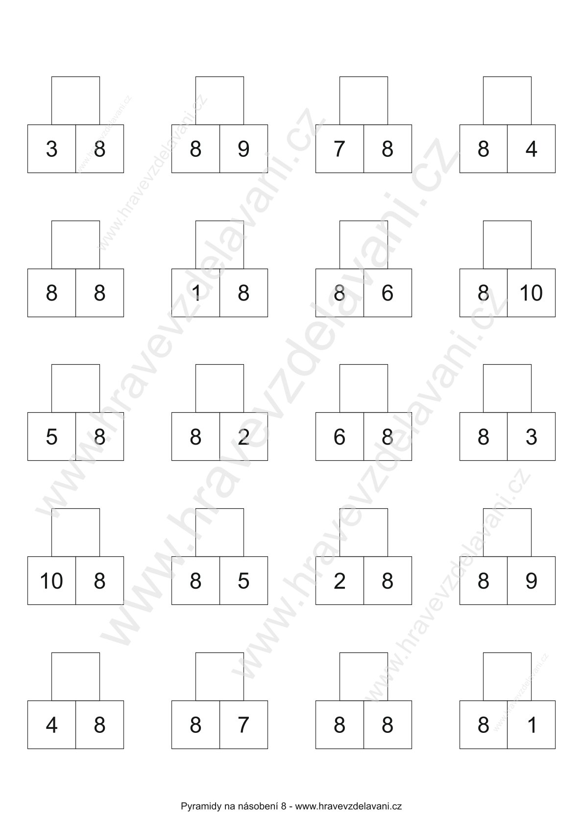 - 1 pracovní list na násobení 8,