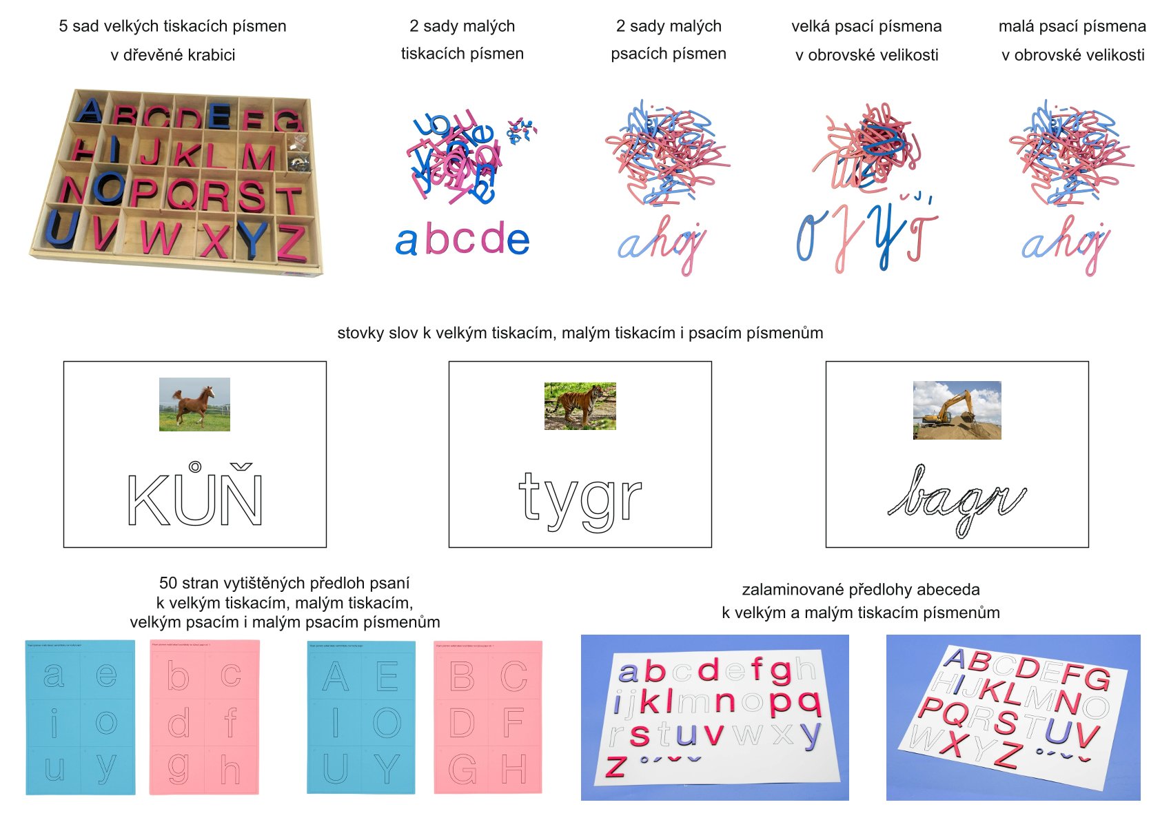 - 50 stran vytištěných předloh psaní: velká tiskací, malá tiskací, velká psací i malá psací písmena